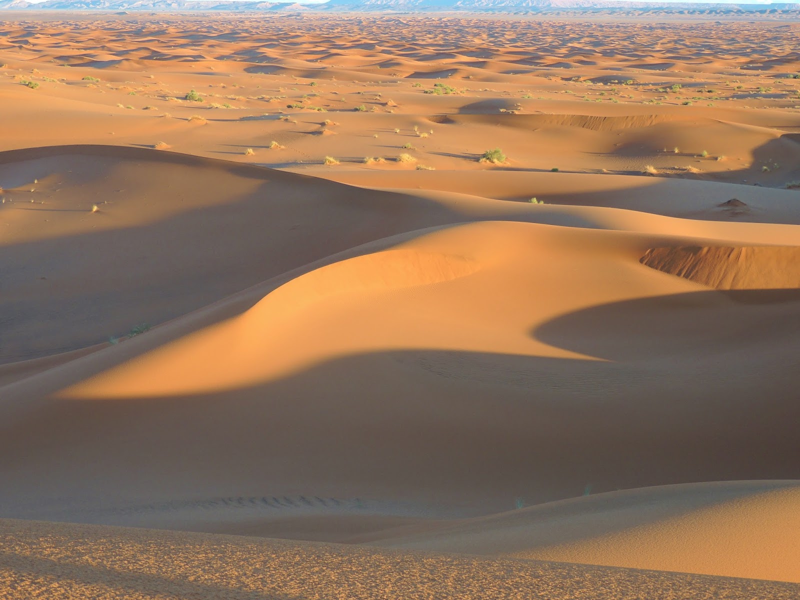 Merzouga, onde situam-se as dunas de Chebbi, ou Erg Chebbi, na divisa com a